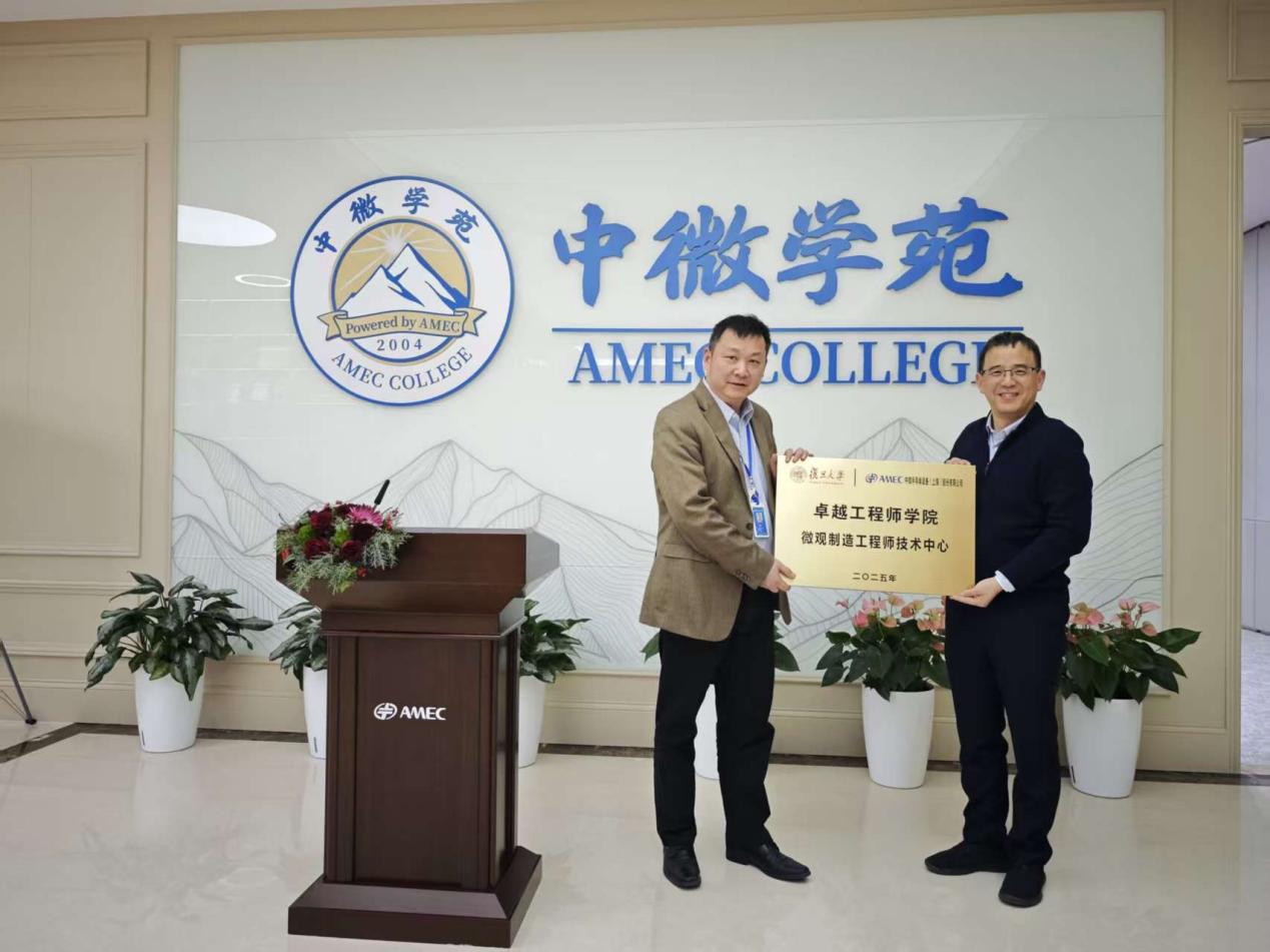 鉴于中微公司对复旦大学新工科建设的支持,梅永丰副院长代表研究生院和卓工学院授予中微公司“复旦大学卓越工程师学院微观制造工程师技术中心”牌匾。他强调工程师技术中心在新工科人才培养中的战略意义,希望双方以此为基础,高效推进课程建设与人才共育。中微公司领导也表示将大力投入资源,支持建设半导体装备人才培养实训基地,实现校企共赢。